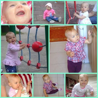 Laura már egy ideje önállóan feláll nem igényel megtámasztást, kapaszkodás nélkül bárhol megáll, és tapsol, integet, hesseget a kezével! (imádom) Álló helyzetből leguggol, és így képes percekig maradni, kapaszkodás nélkül! Ágy mellett kapaszkodva hajol le a játékaiért! Ha egyik kezét fogjuk, nagyon sokáig sétál (mint a nagyok) EGYEDÜL már a szoba egyik végéből elmegy a másikba! Csak biztonságos környezetben engedi el a kezem, és megy egyedül (értsd ez alatt, a saját lakásunk, máshol nem). Lemászást tanulja az ágyról,kisebb nagyobb sikerrel! Ha a kezébe adok egy tollat türelmesen irka-firkál vele (egyik este megkaparintotta a filcet, csupán a tapéta bánja, kis művész).
