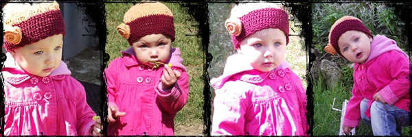 Sikerült Laurának 2 sapit, és egy hajpántot horgolnom, nem profi, de szerintem elég jók lettek.